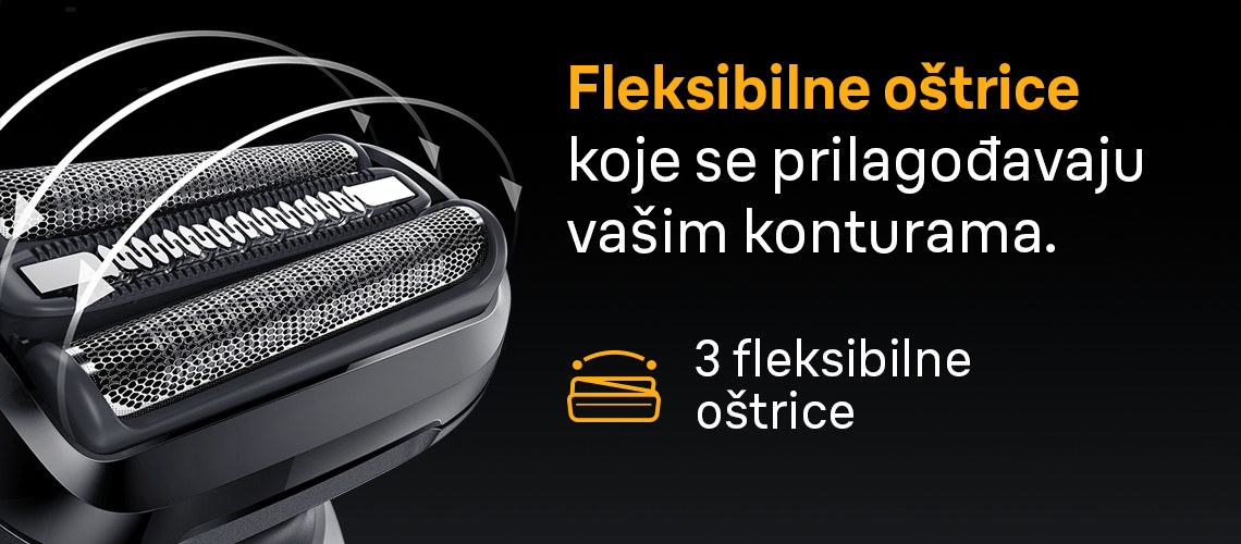 Tri fleksibilne oštrice prilagođavaju se konturama vašeg lica kako bi brijanje bilo što ugodnije.