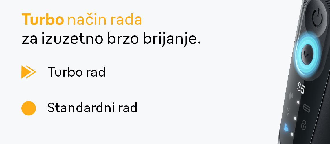 Odabir između turbo i standardnog načina rada omogućuje personalizaciju brijanja prema vašim potrebama.