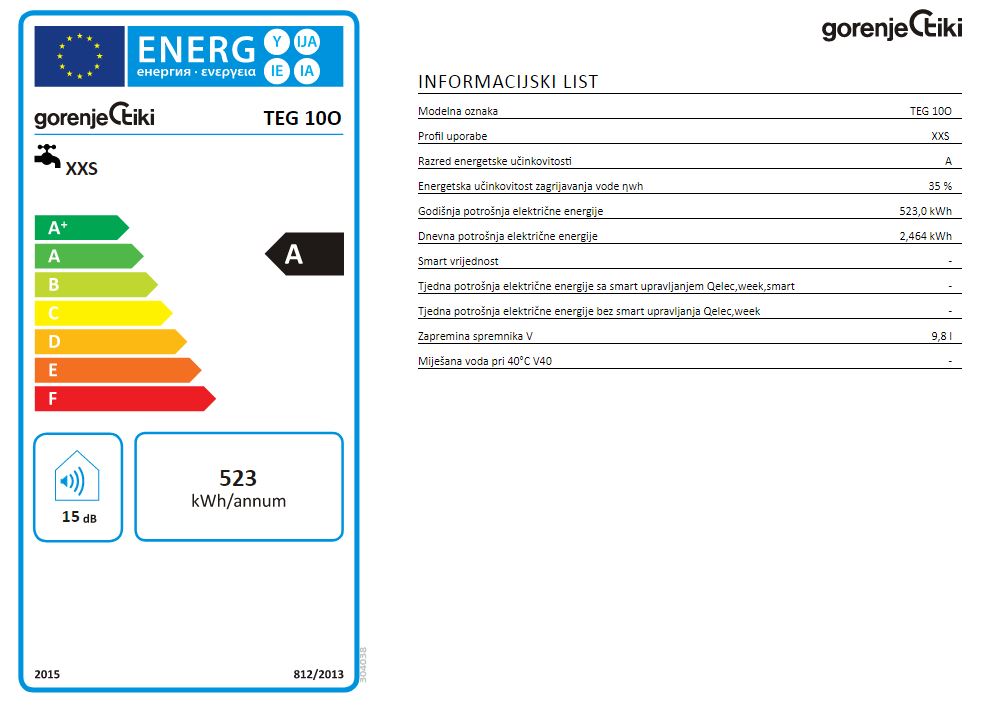 Gubici topline: 0,4 kWh/24