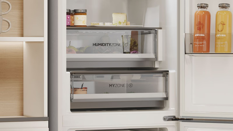 Haier neprestano unaprjeđuje tehnologiju očuvanja svježine, a rezultat su dvije posebne ladice – MyZone i Humidity Zone. MyZone vam omogućuje prilagodbu temperature jednim dodirom, osiguravajući idealne uvjete za različite vrste namirnica. Humidity Zone održava do 90% vlažnosti, čime voće i povrće ostaju svježi, sočni i puni okusa kao prvog dana. Za dodatnu higijenu, T-ABT® tehnologija eliminira do 99,99% bakterija, čuvajući prirodne okuse namirnica i osiguravajući zdravije okruženje za pohranu hrane.* *Only on 2D series 7