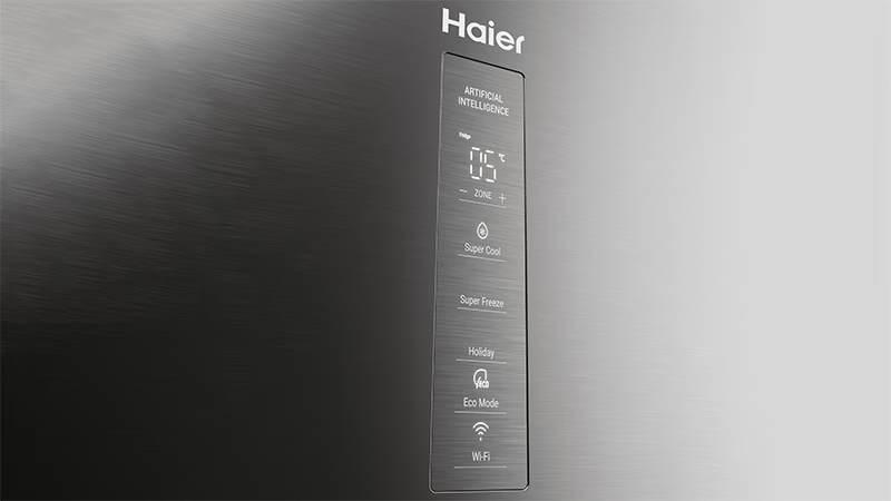 Hladnjak je opremljen vanjskim zaslonom koji omogućuje odvojeno podešavanje temperature hladnjaka i zamrzivača – od 2°C do 8°C za hladnjak i od -16°C do -24°C za zamrzivač. Putem zaslona možete aktivirati i dodatne funkcije poput Holiday, Eco, Super Cool i Super Freeze, a zahvaljujući aplikaciji hOn, možete povezati hladnjak na Wi-Fi i upravljati njime gdje god se nalazili.