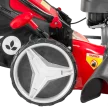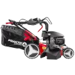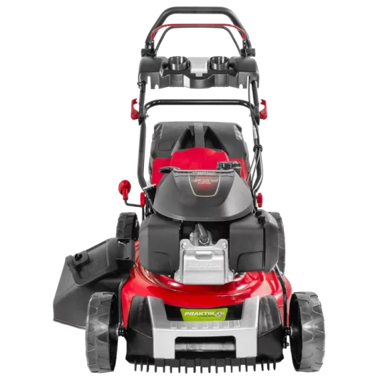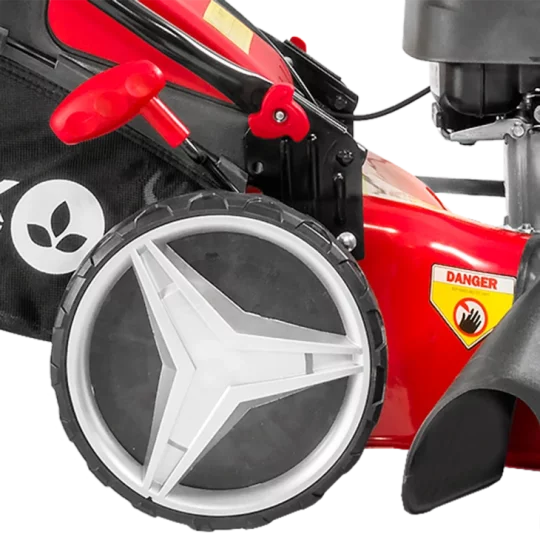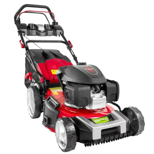 Lako paljenje pomoću startnog mehanizma kojeg možemo postaviti u dva položaja: prvi položaj kao kraća potezna špaga odmah na motoru ili drugi položaj kao duža potezna špaga kako bi nam ručica startnog mehanizma bila bliže glavnim ručkama. Zahvaljujući dobro osmišljenom dizajnu i nožu posebnog oblika, rotirajući nož generira snažan usis da bi se trava podigla prije rezanja, što osigurava čist rez. Visinu košnje je moguće centralno podesiti uz pomoć centralnog sustava za podešavanje visine u više položaja. Svi kotači imaju ugrađene kuglične ležajeve, što u kombinaciji sa velikim kotačima osigurava nesmetan rad na svim visinama trave ili konfiguracijama terena. Pogon na zadnje kotače pruža izuzetno komforan rad i pri dužem košenju. Ugrađeni pogonski sklop na ovoj samohodnoj kosilici je od renomiranog svjetskog proizvođača GT ( General Transmissions ) koji spada u sam vrh po kvaliteti u svijetu, te osigurava vrhunske performanse i izdržljivost. Čvrsto metalno kućište osigurava dugu trajnost i veliku čvrstoću. Na prednjem dijelu kućišta nalazi se maska koja je izvedena u obliku češlja, a doprinosi boljoj raspodjeli trave i usmjeruje je direktno na nož. Moguće je kosilicu podesiti vrlo jednostavno u jedan od četiri moda rada: košnja sa skupljanjem trave u košaru, košnja sa bočnim izbacivanjem trave, košnja sa stražnjim izbacivanjem ili košnja sa malčiranjem trave. Košara velike zapremine je izvedena u kombinaciji tekstila i PVC materijala. Ručke je moguće podesiti u željeni položaj pomoću dvije kopče. Poseban dodatak na ručkama je i držač za piće te spremnik za sitan pribor. Ovaj model je opremljen priključkom na koji može biti spojeno standardno crijevo za vrt pomoću brze spojnice kako bi čišćenje nakon upotrebe bilo što jednostavnije i lakše. Preporučuje se za travnjak površine do 1.600 m².