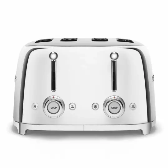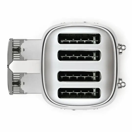 Toster s četiri utora, ukupnim kapacitetom od 4 kriške i dvostrukim sučeljem za istovremeno korištenje različitih funkcija i stupnjeva pečenja. To ga čini savršenim za velike obitelji ili za pripremu različitih vrsta kruha. 50's Style
