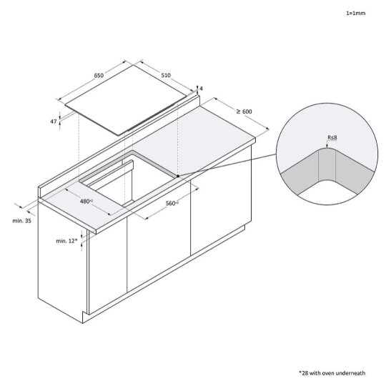 Dimenzije ugradnog prostora (mm) 560x480x47