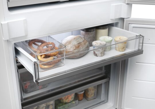 Otkrijte neusporediv kapacitet pohrane u našem najnovijem ugradbenom hladnjaku, gdje možete s lakoćom pohraniti svu svoju svježu hranu i piće, uz impresivan ukupnu zapremninu od 400 litara. Bilo da se radi o vašem omiljenom voću, povrću, ribi ili pićima, sve možete organizirati na najučinkovitiji način.