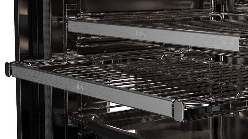 Širok asortiman premium dodataka dodatno unapređuje praktičnost i svestranost vaše Haier pećnice. Uključuje super-klizne i produžive teleskopske vodilice, roštilj s ručkom te posudu s silikonskom ručkom koja je otporna na visoke temperature i osigurava siguran hvat.